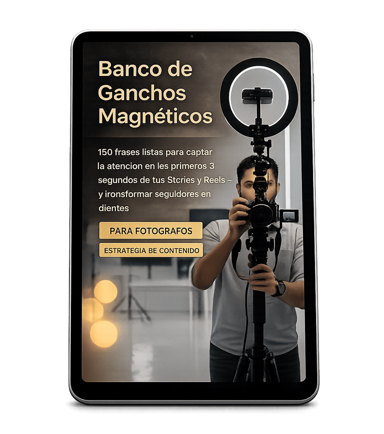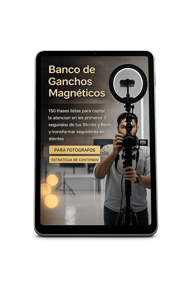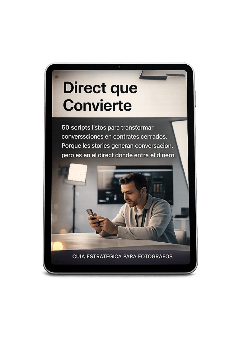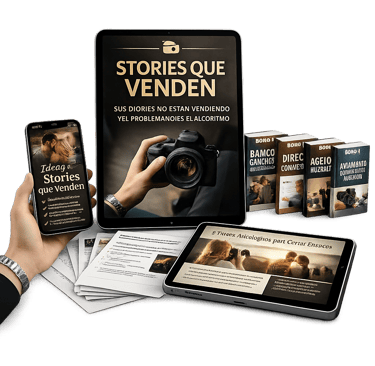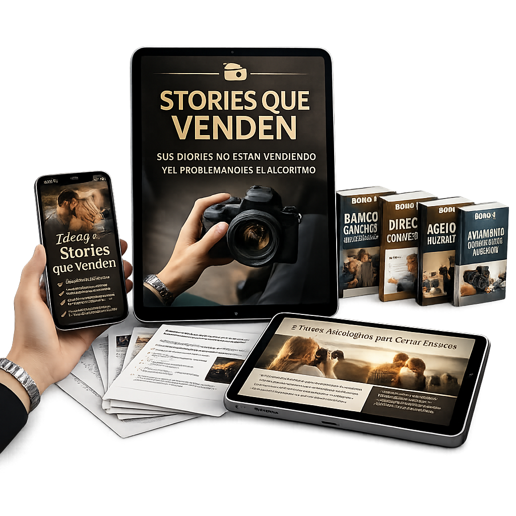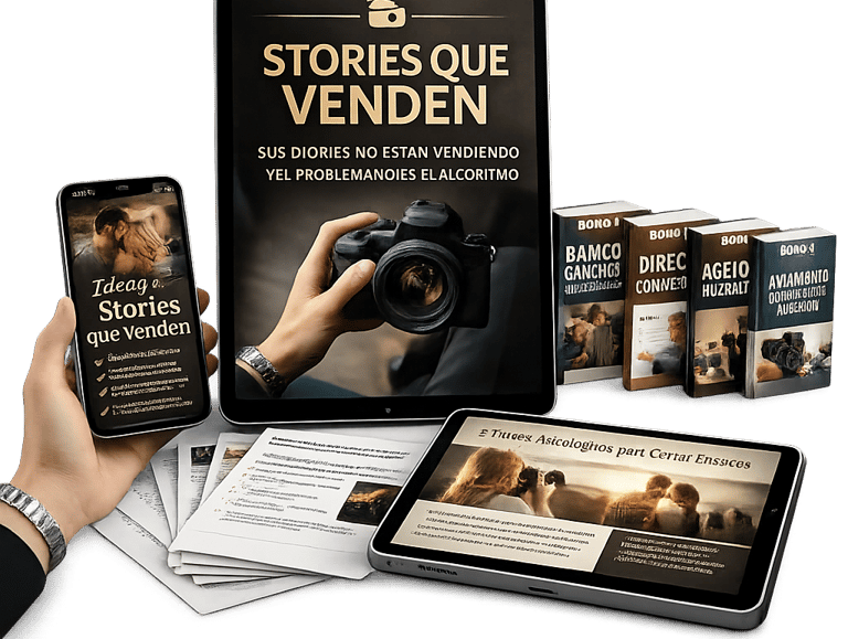 El sistema estratégico para fotógrafos que están cansados de publicar sin resultados y quieren transformar sus stories en una máquina constante de ventas, con guiones listos que convierten intención en clientes reales.